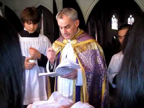 En el antiguo ritual del bautismo, tras los exorcismos que tienen lugar a la puerta de la iglesia, el sacerdote pone el extremo izquierdo de la estola morada sobre el infante, que es llevado en brazos por el padrino o la madrina, y colocándose a la derecha conduce la comitiva hasta la pila recitando el Credo y el Pater.